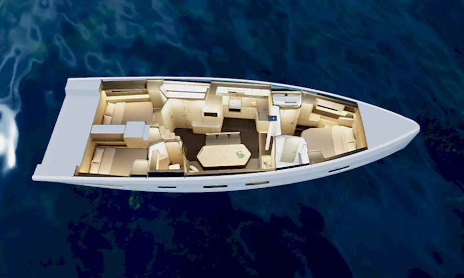 Dufour, bu modelde olduğu gibi birçok yelkenlisinde de farklı yerleşim seçenekleri sunar. Son adımda ise ahşap kaplama ve döşeme stilini seçerek teknenizin iç tasarımını tamamen zevkinize uygun hale getirin.