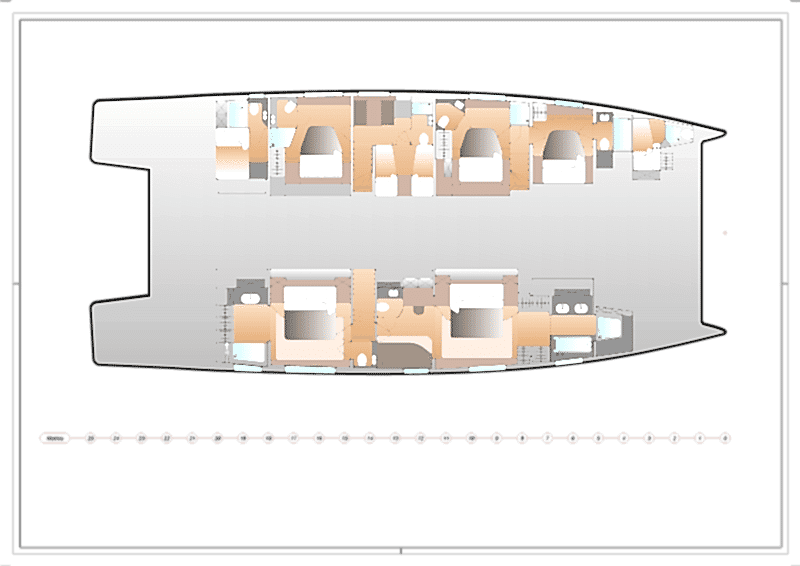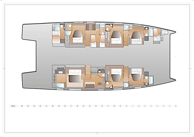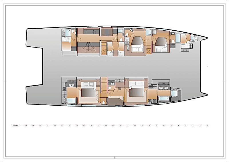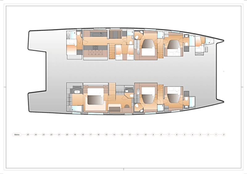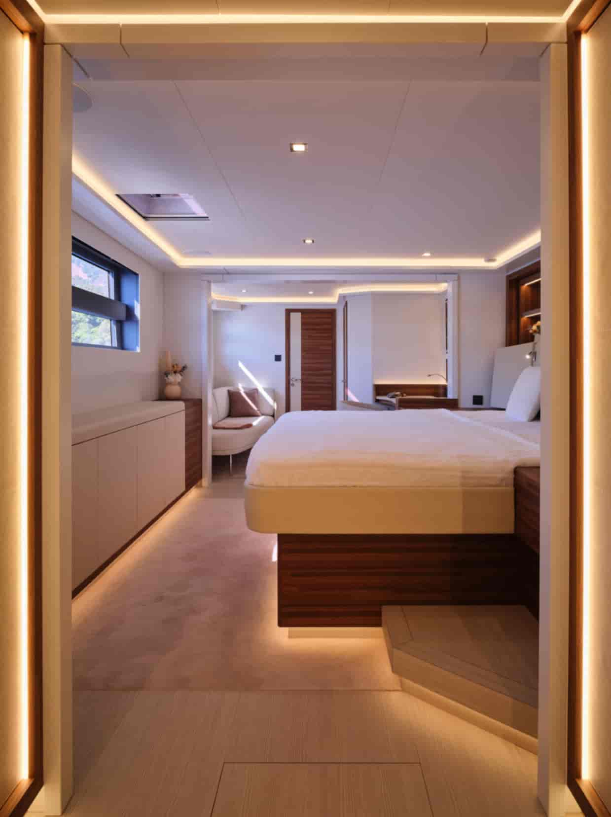 Power 80’in yaşam alanları boyutlarıyla olduğu kadar çeşitliliğiyle de etkileyici. 12 konuğa kadar konforlu konaklama imkânı sunan modüler iç plan, sadece 6 misafir içinse ultra lüks bir deneyime dönüşüyor. Beş kişilik mürettebat için ayrı ve şık yaşam alanları da mevcut.