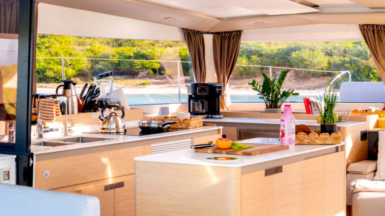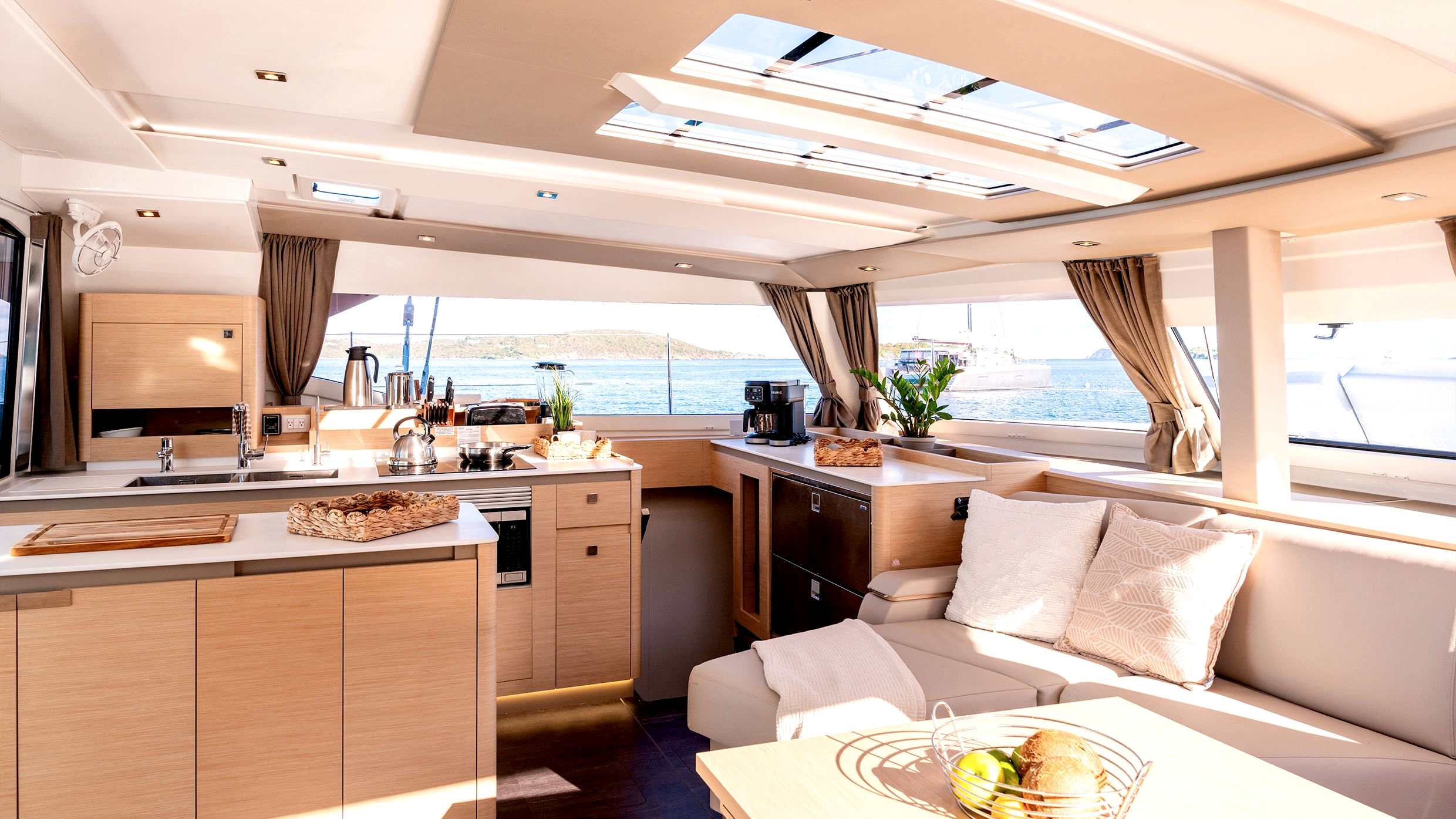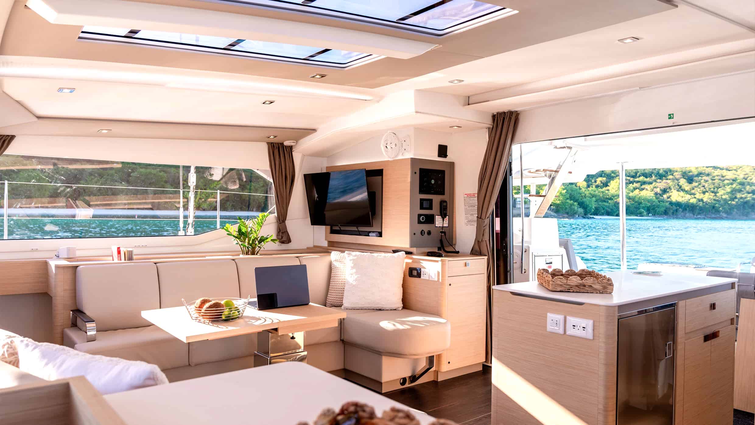 Kokpit–salon güverte planı, büyük ölçüde açılabilen ve tek bir bütün olarak kurgulanmış kesintisiz bir yaşam alanı sunar. İç ve dış mekanlar arasındaki doğal geçişler, aile seyirleri ve misafir ağırlamak için ideal bir ortam yaratır.