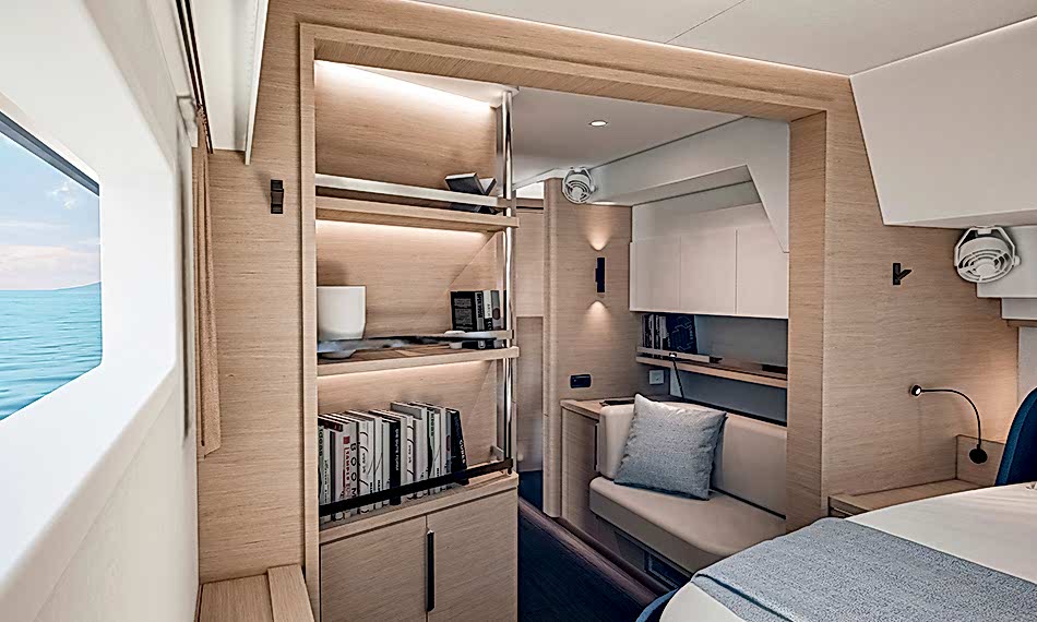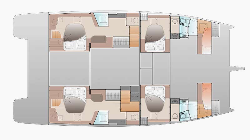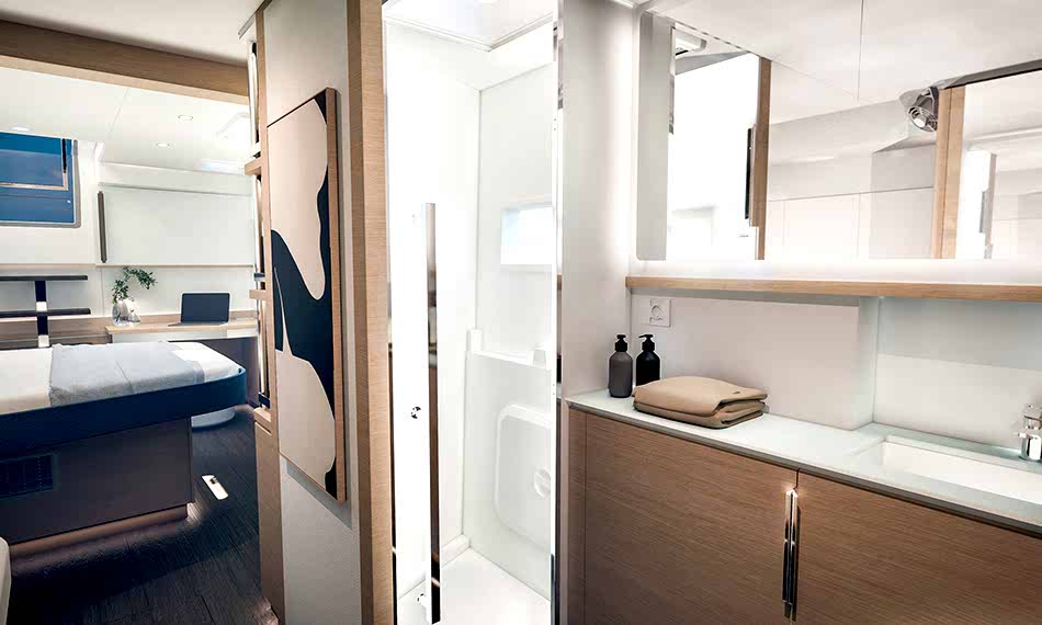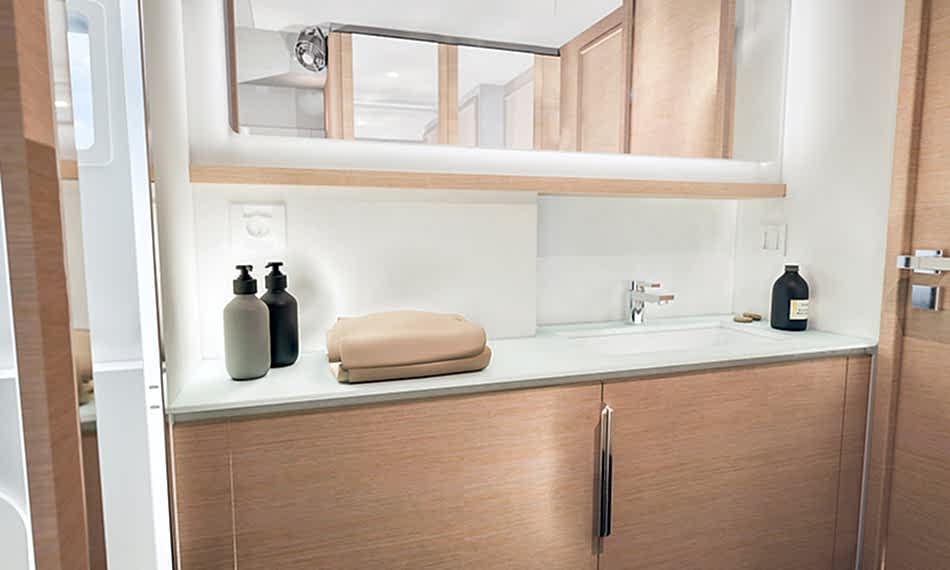 Bu boyutta piyasadaki tek gerçek gezi katamaranı olarak FP55, her gövdede birer tane olmak üzere iki tam donanımlı süit barındırır. Böylece konfor ve mahremiyet paylaşılmak zorunda kalmaz; aynı anda korunur.