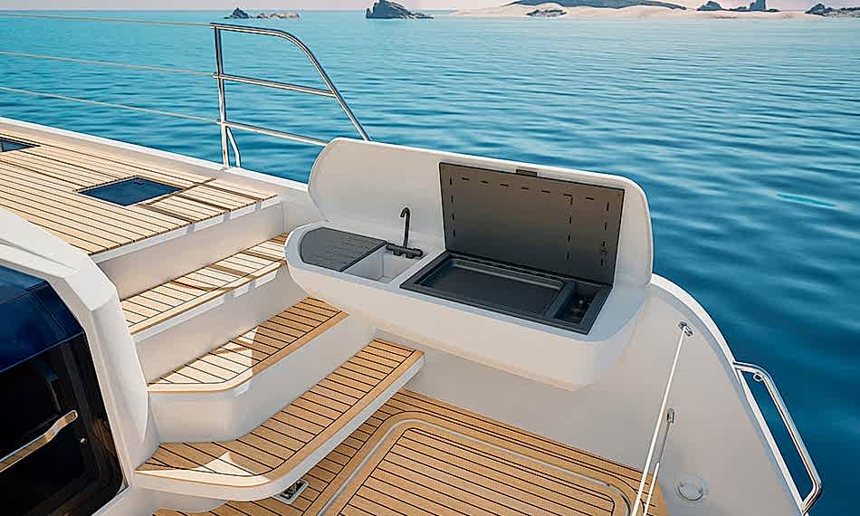 FP55, serimizde ön kokpite doğrudan erişim kapısına sahip ilk modeldir. Bu yenilikçi güverte düzeni, temiz hava ve hareket akışını tek bir doğal rotada buluşturur.